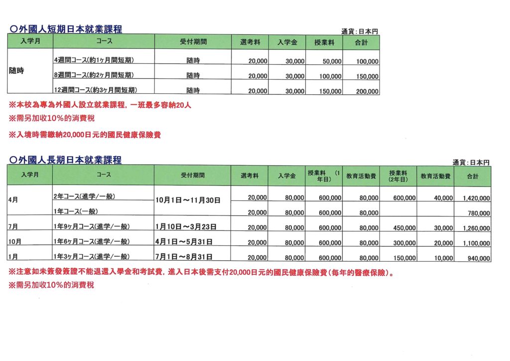 最短課程為4週至3個月,香港人無需簽證即可停留90天,可參加短期課程,以提高他們的日語水平。